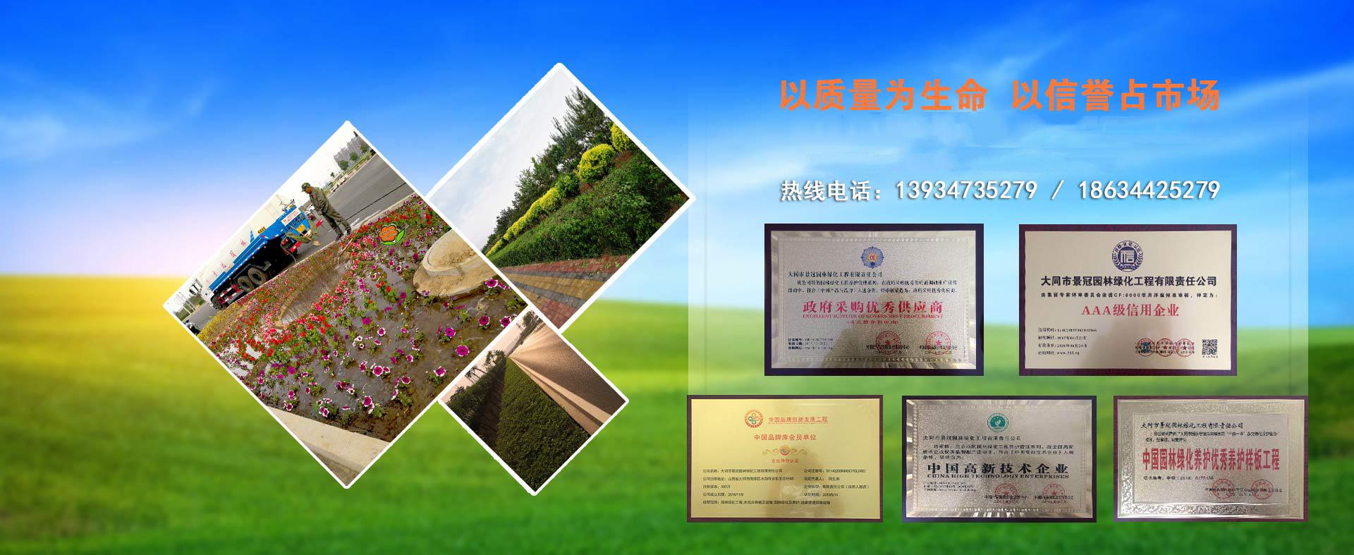大同市景冠園林綠化工程有限責(zé)任公司是一家根植于設(shè)計、施工、植保養(yǎng)護(hù)、苗木花卉生產(chǎn)于一體的園林景觀企業(yè)。公司“以質(zhì)量為生命”、“以信譽求發(fā)展”這是公司一貫的經(jīng)營宗旨。并以創(chuàng)新,誠信,綠色,共享的發(fā)展理念,創(chuàng)造良好的企業(yè)環(huán)境。堅持愛綠,護(hù)綠,保綠的方針為城市增添一份綠色,用綠色擔(dān)當(dāng)生態(tài)建設(shè)使命是我們共同追求的價值和企業(yè)目標(biāo)。以全新的管理模式,完善的技術(shù),周到的服務(wù),卓越的品質(zhì)為生存根本。幾年來我們致力于園林景觀植物領(lǐng)域的研究,在城市綜合體景觀,校園園林景觀,道路景觀,生態(tài)農(nóng)業(yè)景觀,美麗鄉(xiāng)村景觀,濕地景觀等多個領(lǐng)域參與規(guī)劃設(shè)計施工。不斷加大科技投入力度,加強(qiáng)人才的儲備,網(wǎng)絡(luò)技術(shù)的培訓(xùn),提升自主創(chuàng)新能力,不斷完善企業(yè)文化,用超前的技術(shù)制定出一套完整的園林植保技術(shù)管理方案。我們堅持以擔(dān)當(dāng)為使命,用戶至上,服務(wù)至上,秉持初衷,不忘初心,實實在在,心無旁騖做好植保養(yǎng)護(hù)主業(yè),打造屬于自己的企業(yè)品牌,好好服務(wù)客戶,打動客戶。